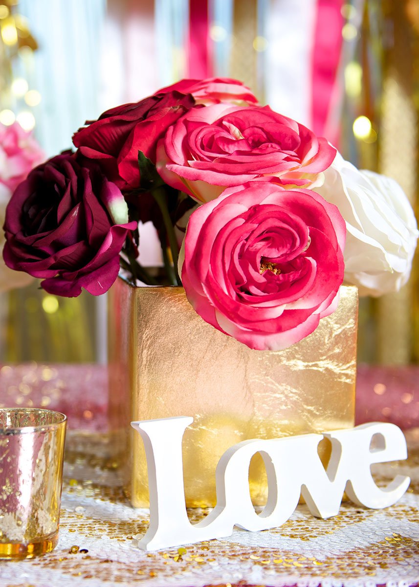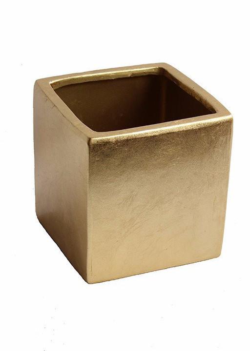 Create the perfect glam modern flower centerpiece for your wedding with this chic ceramic square cube vase in metallic matte gold.