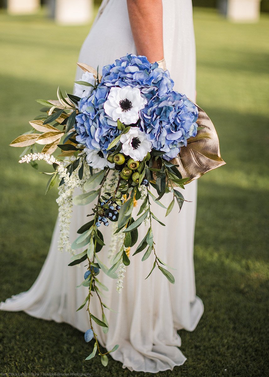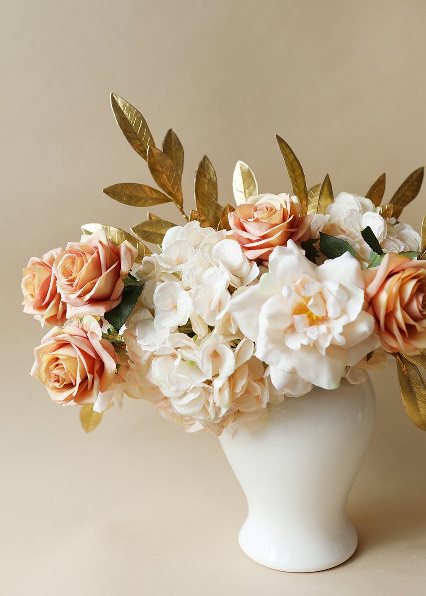 Get artificial holiday leaves, like this gorgeous metallic gold fake bay leaf spray. Use to glam up your DIY winter wedding bouquets and Christmas floral arrangements.