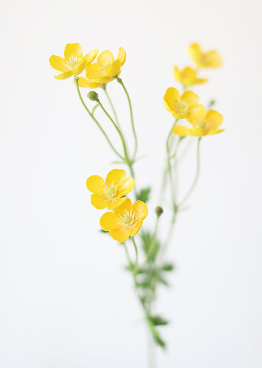 Find artificial spring flowers for your wedding, like this sweet yellow buttercup flower spray. These little, fake buttercups are sure to cheer up your floral arrangements.