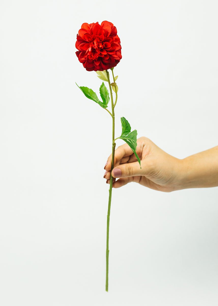 Bring a pop of bold color to your DIY floral arrangements and wedding flowers bouquet with this gorgeous red artificial dahlia stem.