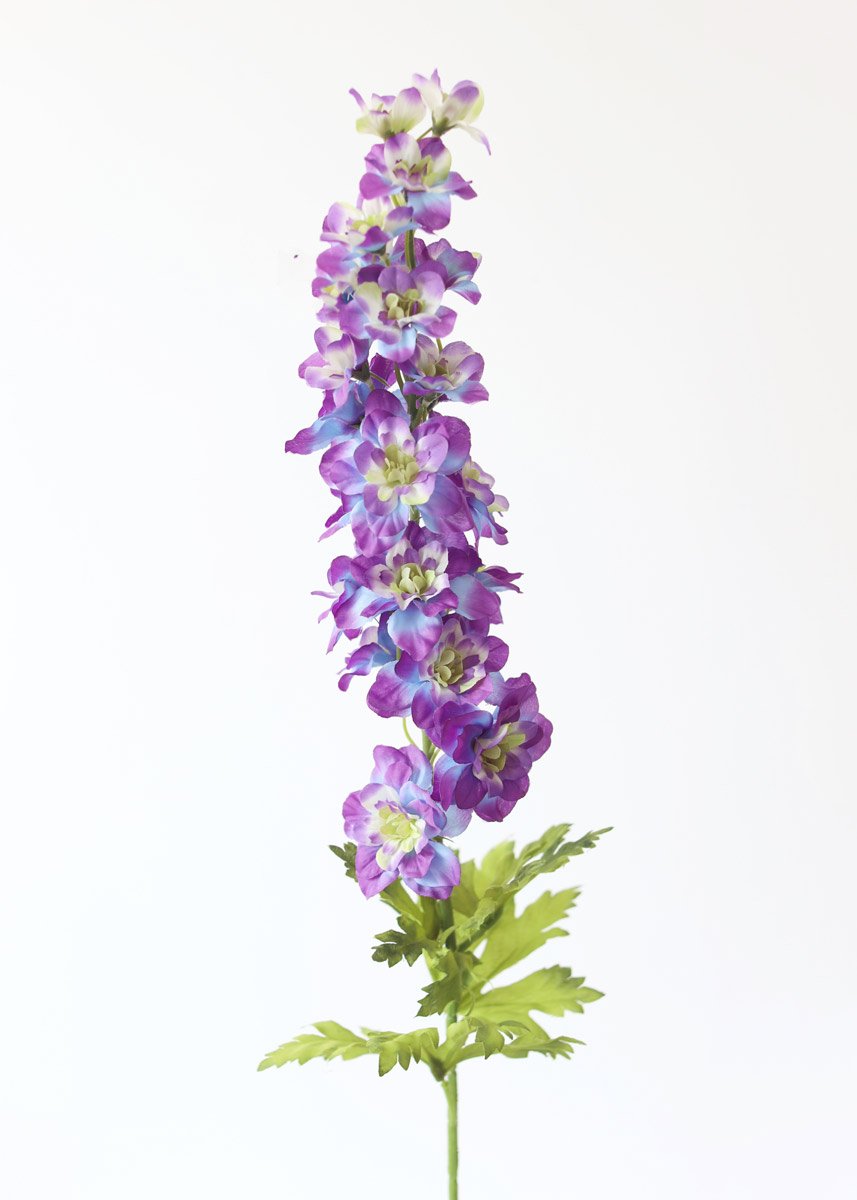 Find fake wildflowers, like this delphinium stem in purple and blue. These artificial larkspur flowers add stunning beauty to your table vase arrangements, flower bouquets, and wedding centerpieces.