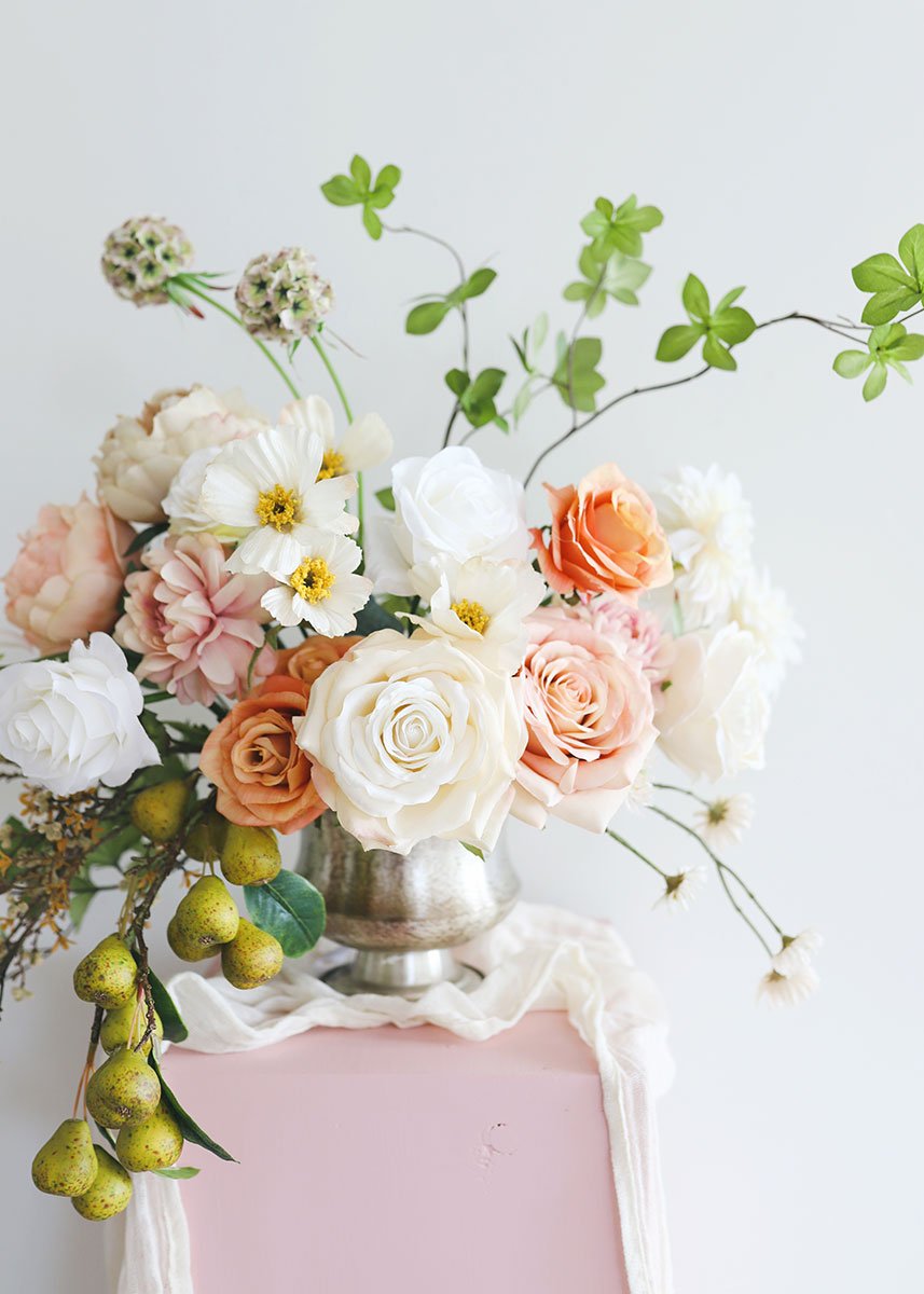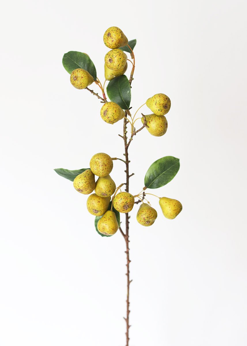 Find artificial fruit, like these realistic fake yellow pears with brown speckles. Add to DIY flower arrangements, or cut apart and create wedding escort cards.