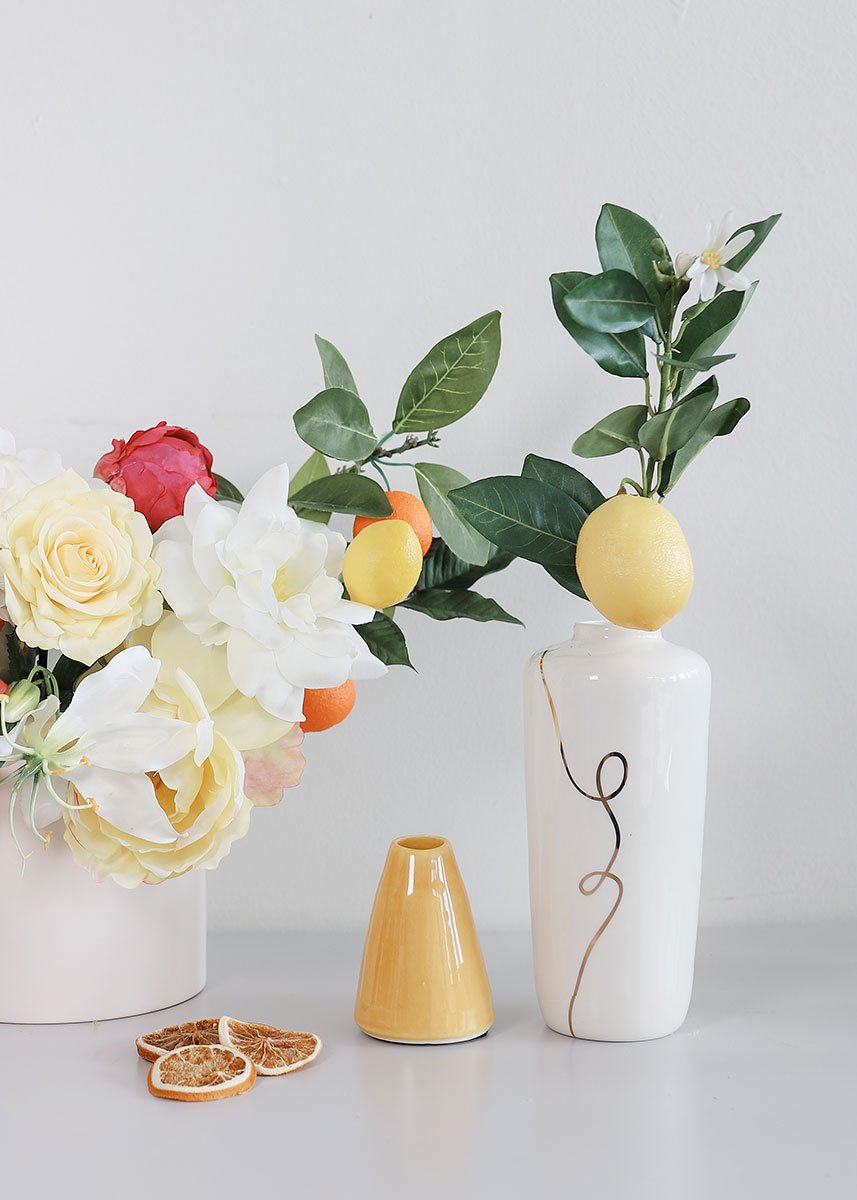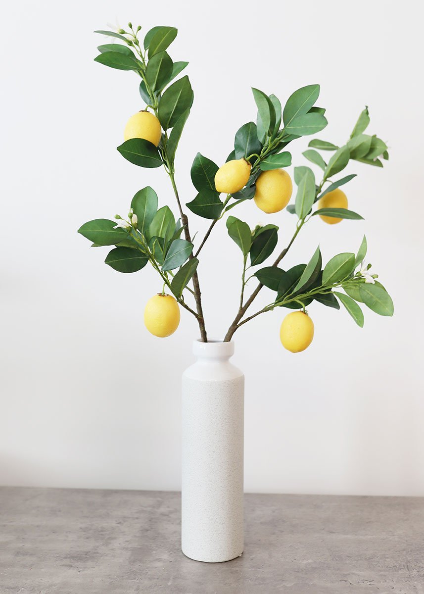 Find artificial fruit for your DIY crafts, wedding centerpieces, and other floral projects. This yellow lemon branch will add stunning beauty to your tall vase arrangements.