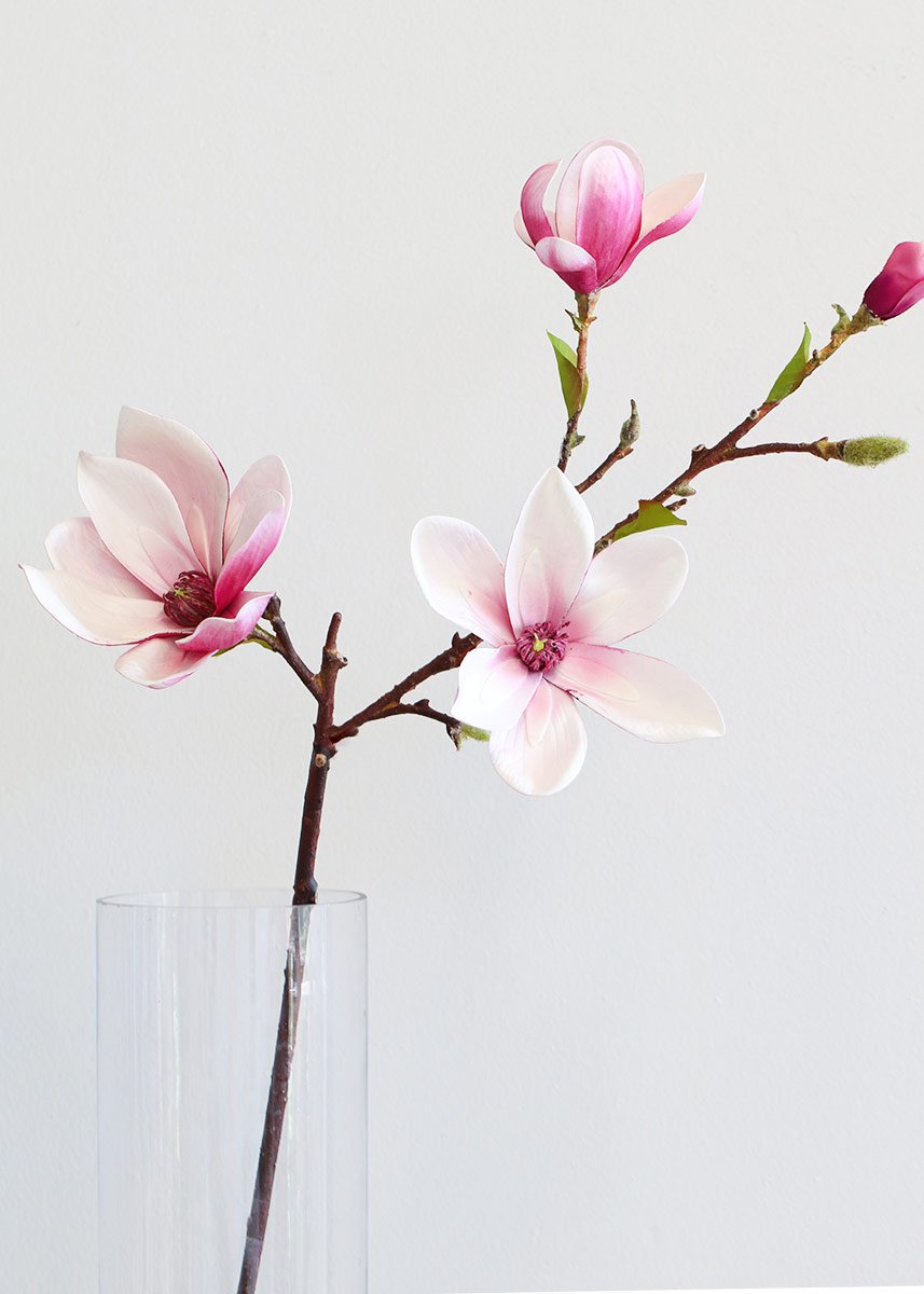 Find artificial spring wedding flowers, like this gorgeous pink magnolia branch. Branch is made from EVA plastic that is eco-friendly and water resistant.