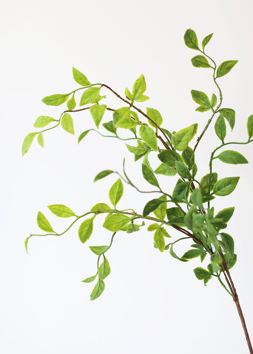 Find fake tropical leaves for your DIY floral arrangements, like this beautiful green artificial nandina leaf branch. It's also known as sacred bamboo and heavenly bamboo.
