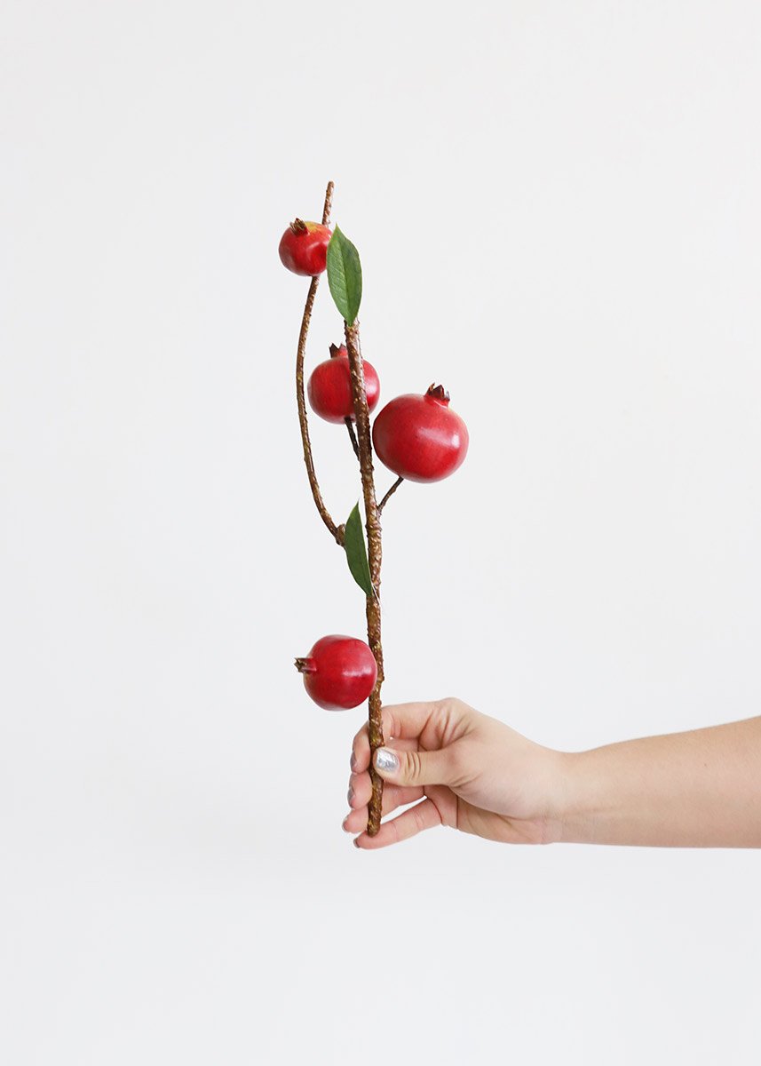 Create stunning holiday floral arrangements with unique artificial stems, like this beautiful red pomegranate spray.
