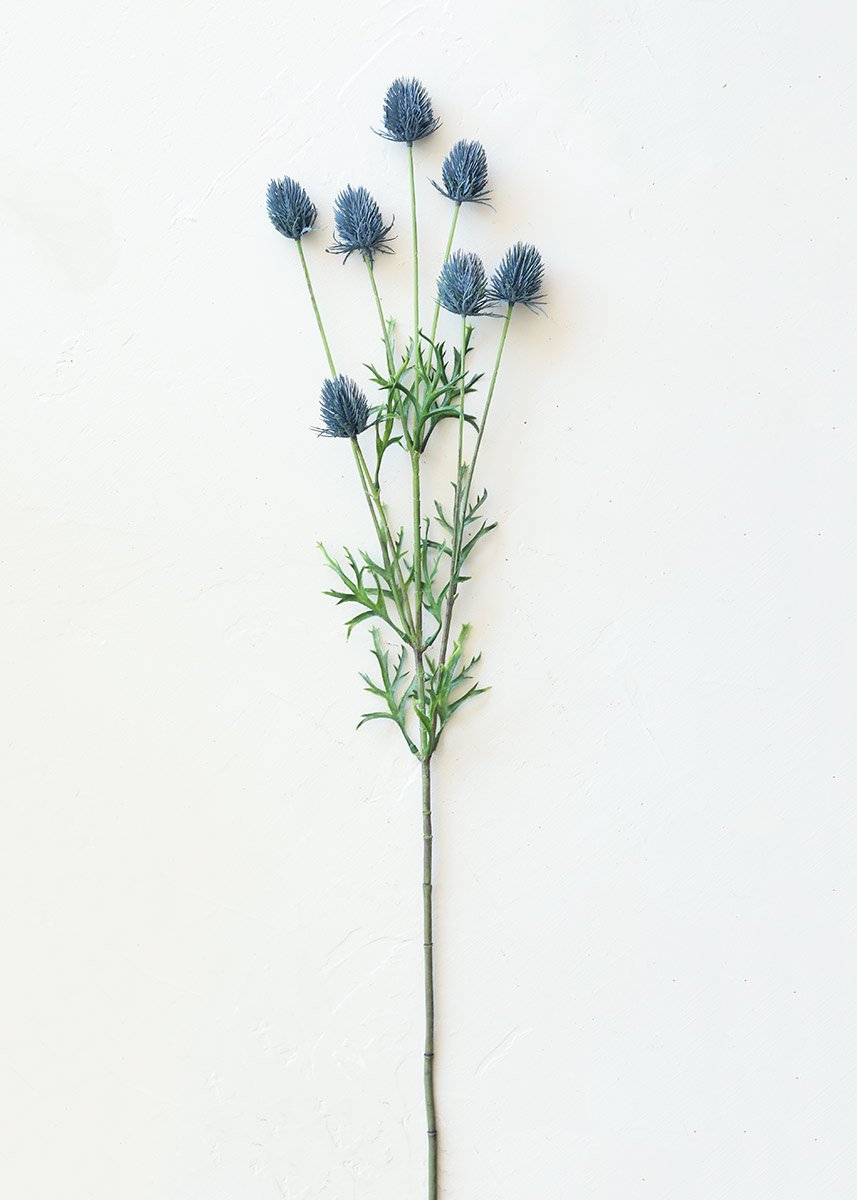 Looking for blue artificial fall wedding flowers? Check out this beautiful, faux thistle wild flower spray in blue. These blue thistles are the perfect filler to add unique detail to your DIY fall flower bouquets and centerpieces.