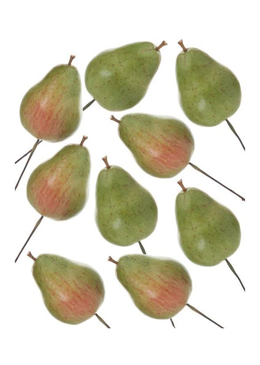 Find fake fruit for your Christmas decorations, like these artificial pear picks in green with red accents. These waterproof pears will look festive in your holiday floral arrangements.