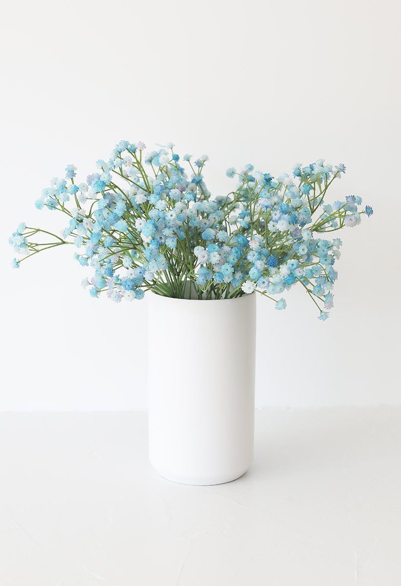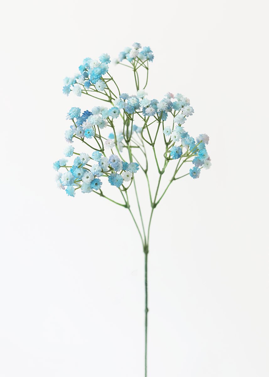 Find artificial filler flowers, like this adorable blue gypsophila baby's breath spray. Perfect to add extra color to your DIY floral arrangements and wedding bouquets.
