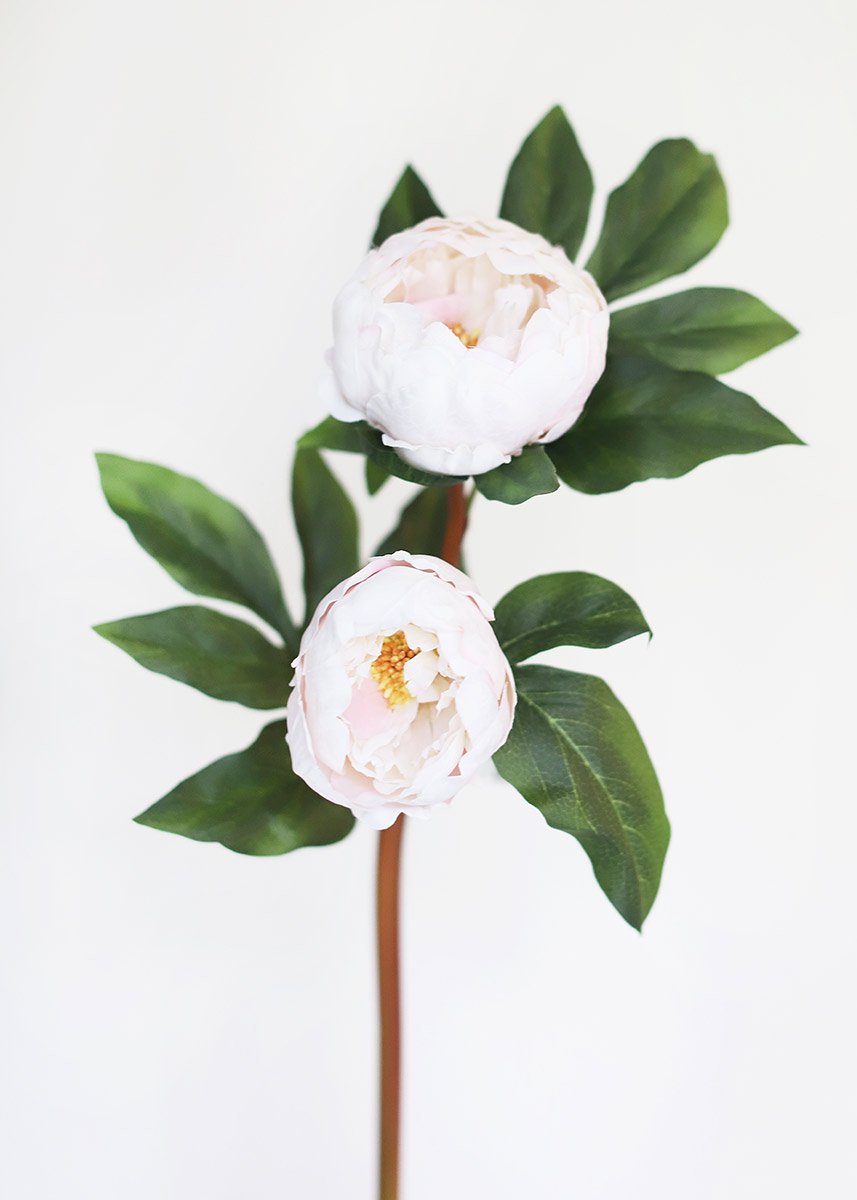 Find blush artificial wedding flowers, like this beautiful blush pink silk peony stem that offers elegance. These faux peonies fit perfectly into your classic flower bouquets and floral designs.