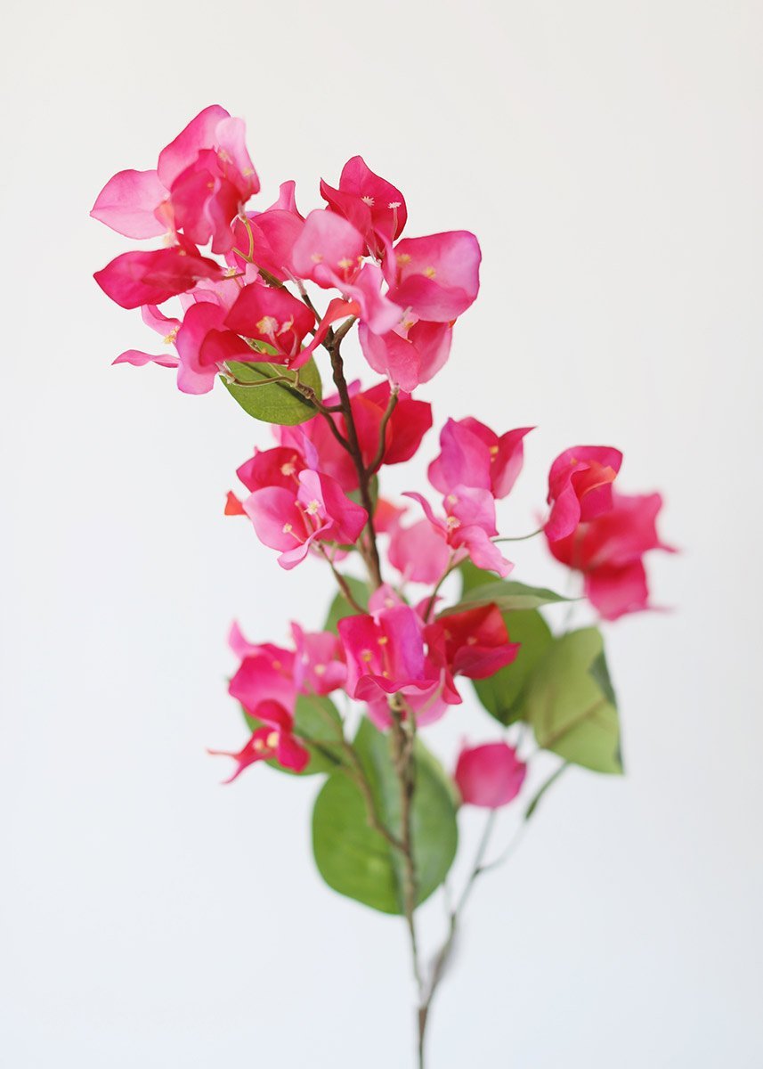 Find fuchsia wedding flowers, like this beautiful, faux bougainvillea flower spray in fuchsia pink with orange accents. These charming bougainvilleas are perfect to add vibrant color and stunning height to your DIY spring bouquets!