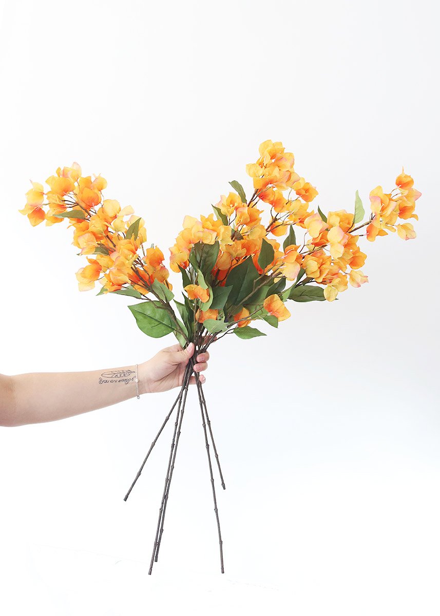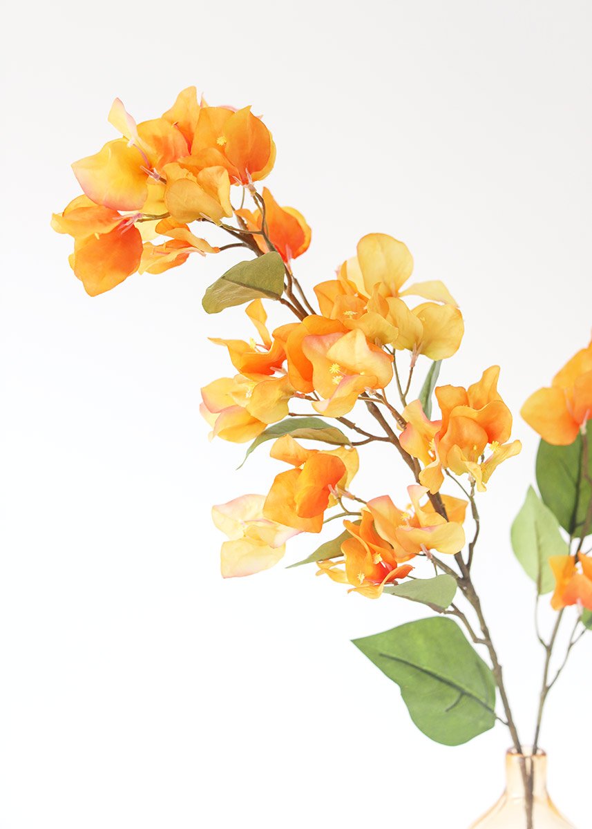 Give your artificial flower arrangements a pop of color with this orange-pink ombre artificial bougainvillea flower. Simply drop this stem in a tall vase or add to any floral design for a look that lasts!