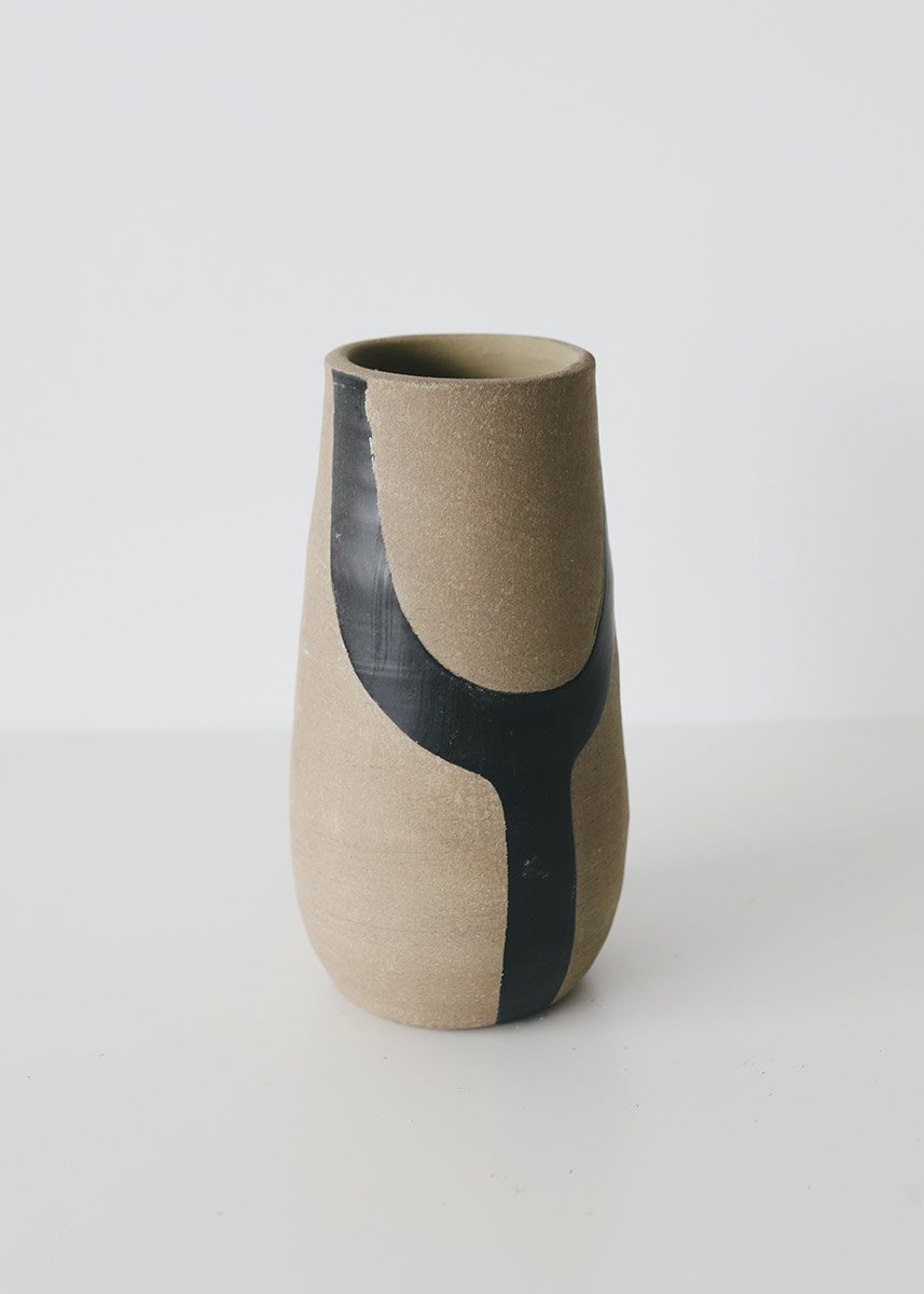 Decorate your home with table vases that double as art pieces, like this stylish terra cotta flower vase. It's earthy brown with a hand-painted design in black.