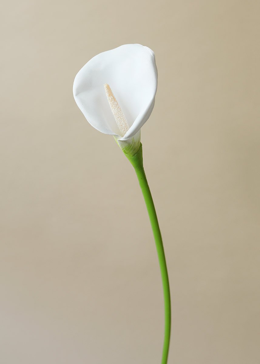Single large white foam calla lily with an ivory stamen. The perfect artificial flower to give your wedding bouquets elegant height for a stunning focal point!
