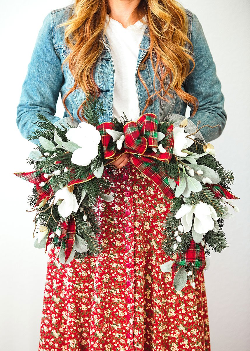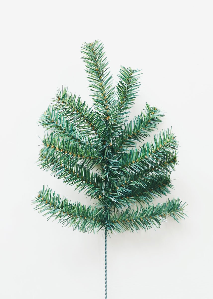 Find artificial winter greenery for the Christmas season, like this beautiful Canadian pine spray in green. Essential greens for DIY holiday arrangements and your festive home decor!