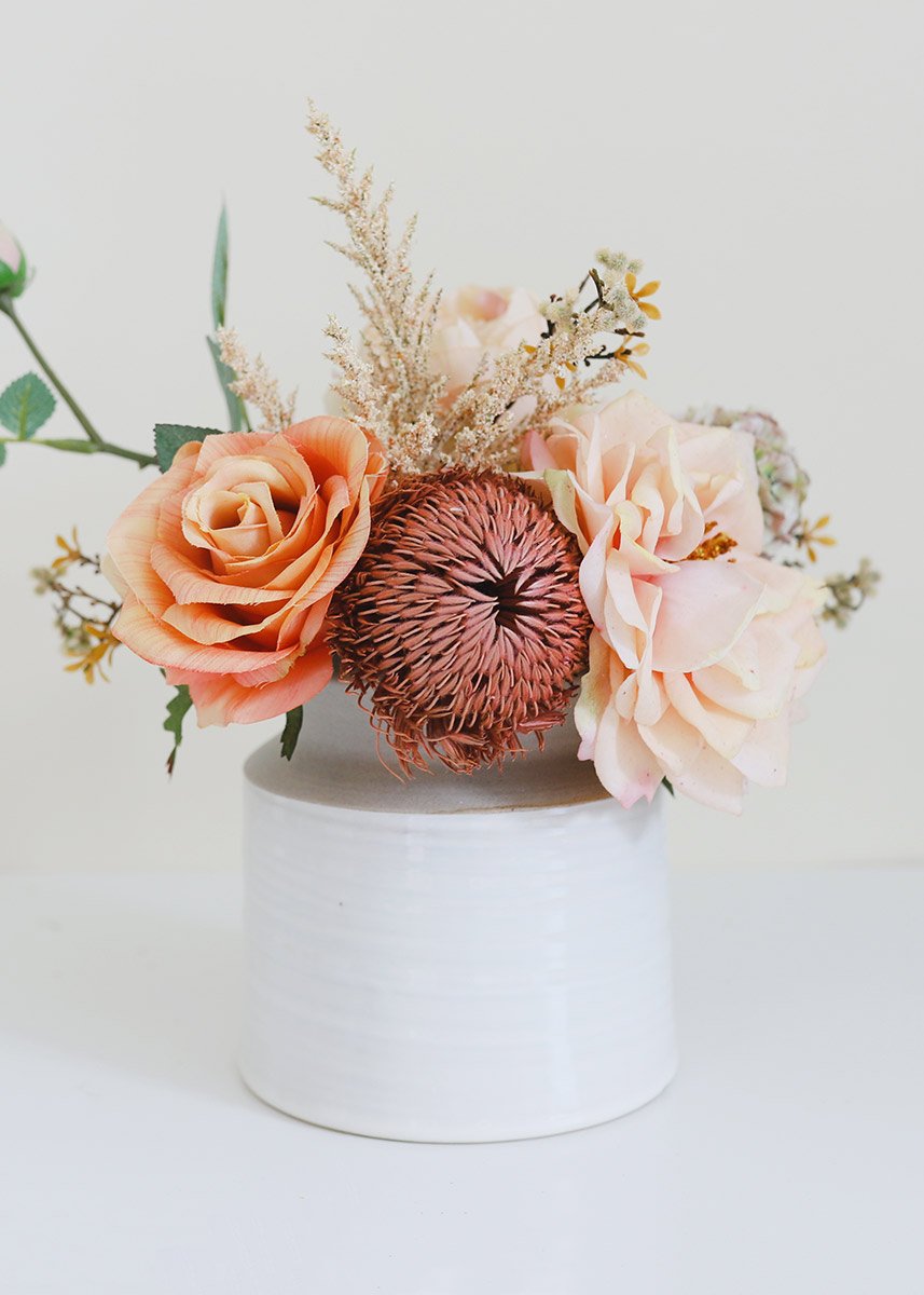 Ceramic flower vases for your favorite flowers. This charming brown and cream beige ceramic crock is perfect for your DIY tabletop floral arrangement.