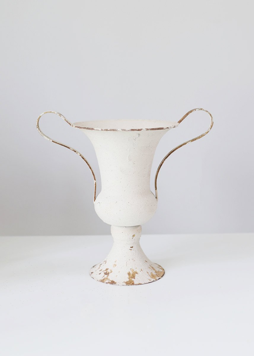 Cream Distressed Metal Urn Vase with Handles - 10.5" Tall