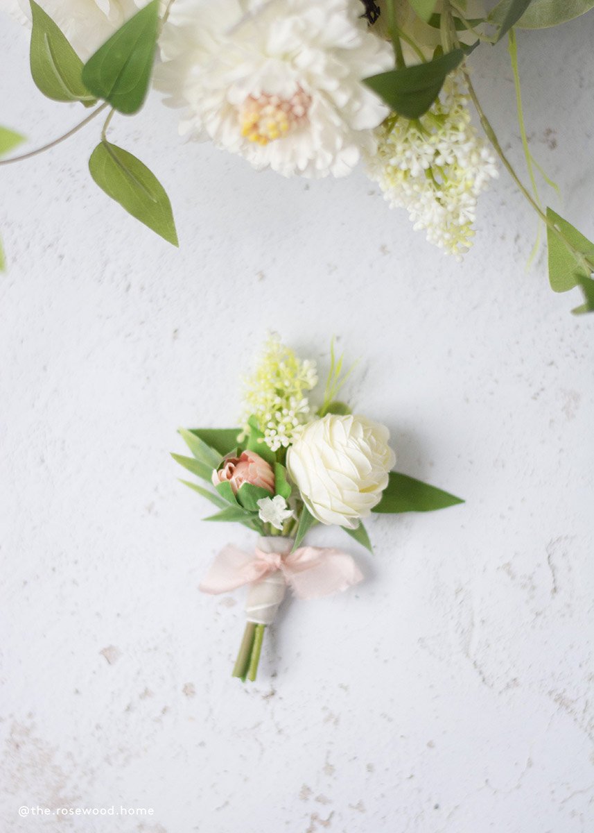 Super adorable cream artificial mini ranunculus flowers are the ideal size for your DIY wedding flower boutonnieres. But, their cone-shaped blooms also are great to add texture to any arrangement.