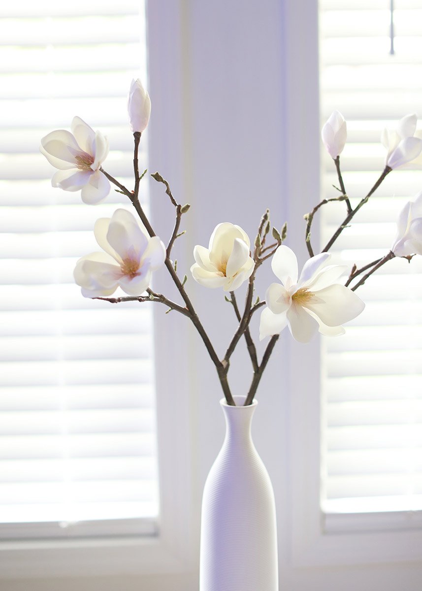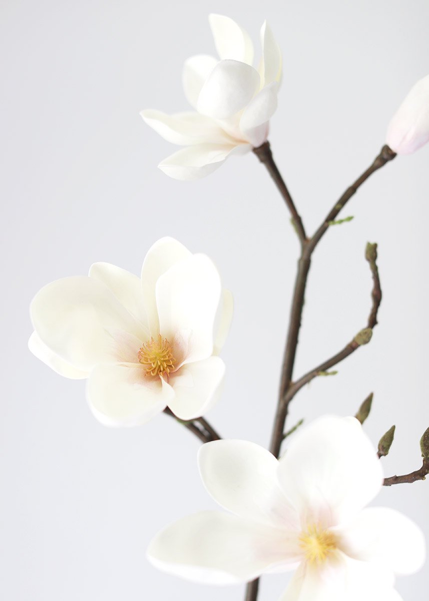 Find artificial spring wedding flowers, like this beautiful cream foam magnolia flower branch. Create a stunning tall floral centerpiece or a simple DIY bouquet with just a few blooms.