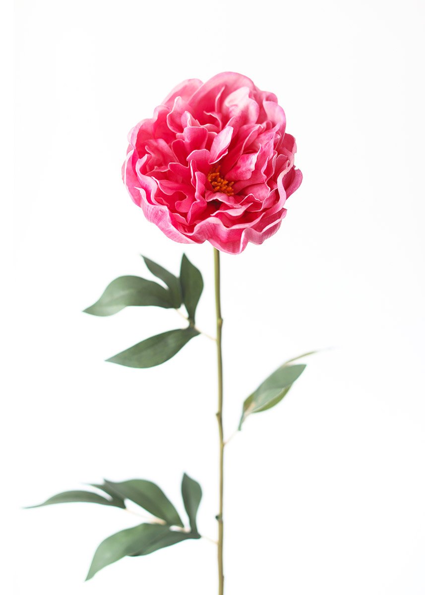 Choose hassle-free artificial flowers, like this gorgeous dark pink real touch peony stem, to easily style your vase arrangements and wedding designs. This life-like bloom enhances bouquets and corsages alike.