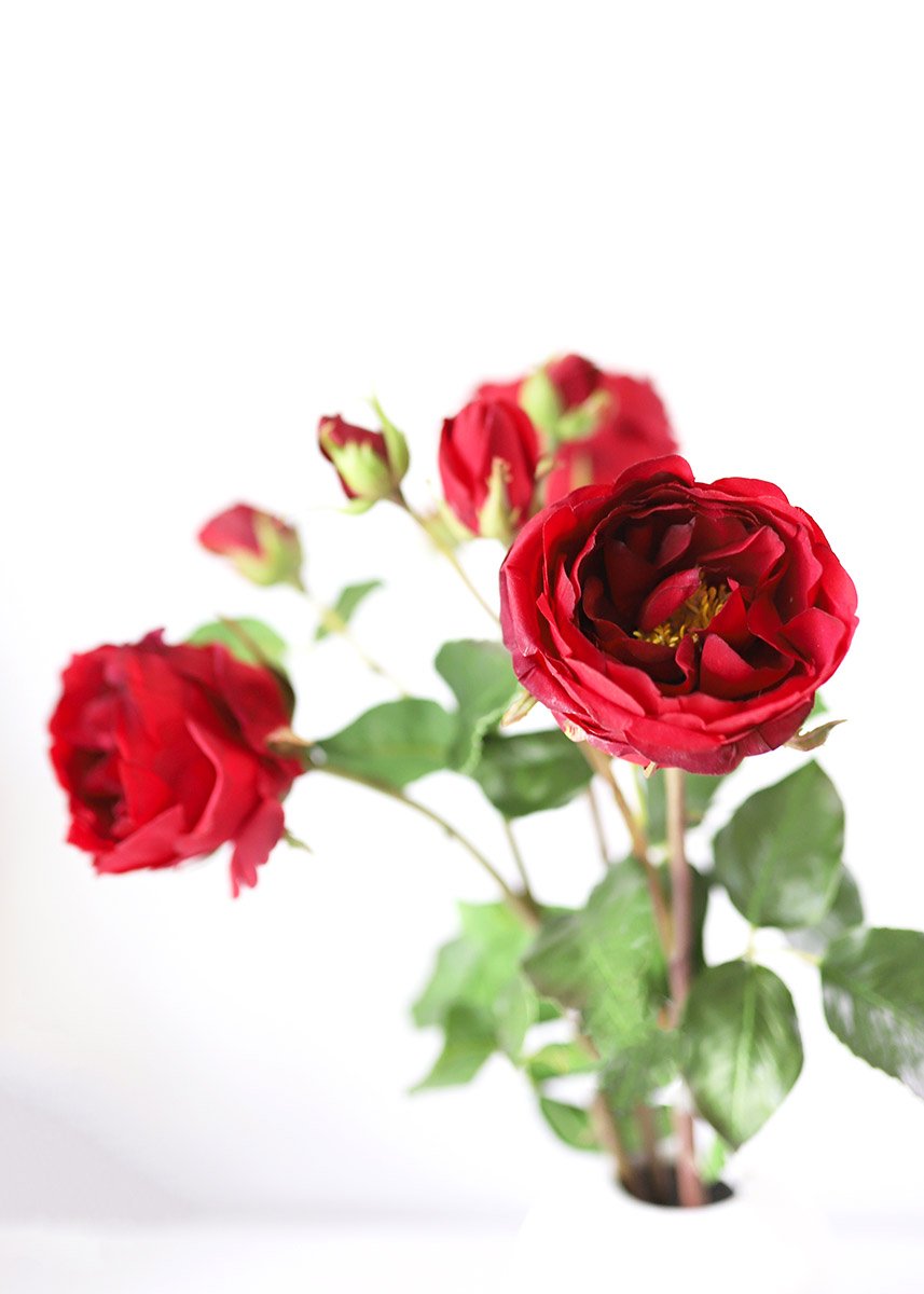 Find flowers, artificial and remarkably realistic, for your DIY floral designs! This gorgeous deep red Charlotte English rose soft touch bloom is the perfect addition to your silk flower arrangements.