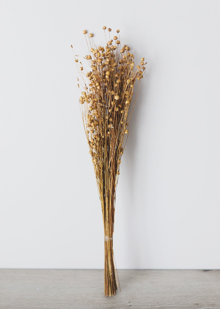 Find natural dried grasses, like this dried flax foliage with small seed pods. Use as filler for your DIY dried flower arrangements. This flax is naturally beautiful, each bundle will be unique.