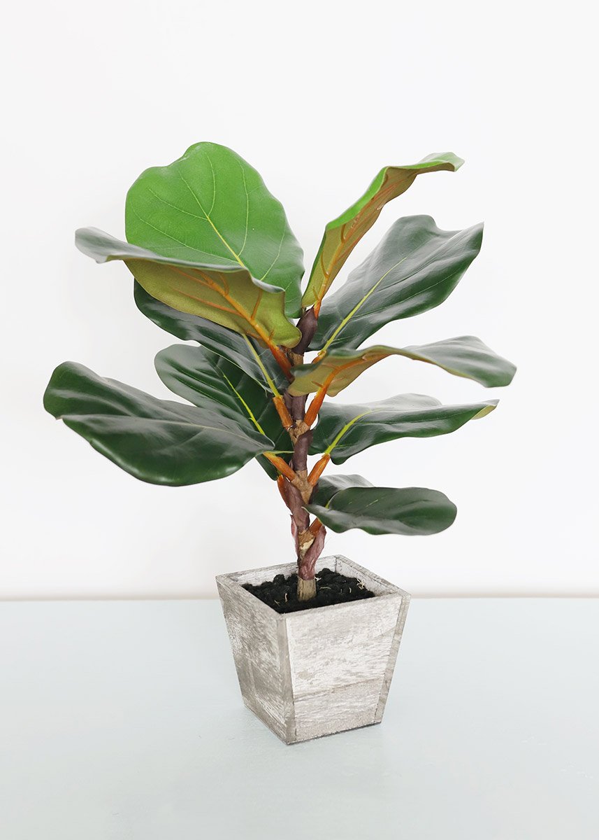 Artificial Fiddle Fig Leaf Plant in Wood Planter - 18" Tall