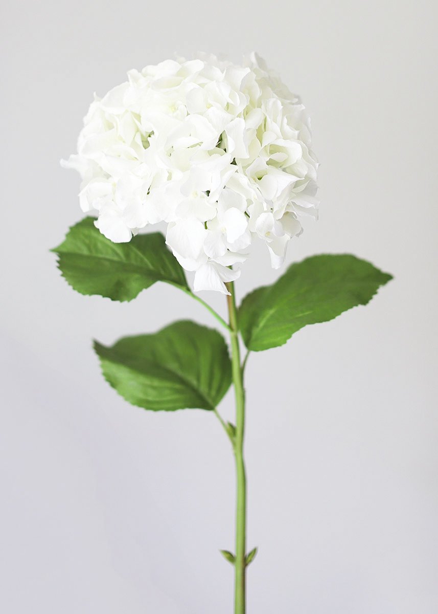 Take your everyday floral arrangements and wedding designs to a new level with life-like faux flowers from Afloral.com. This beautiful white artificial hydrangea stem is pure perfection.
