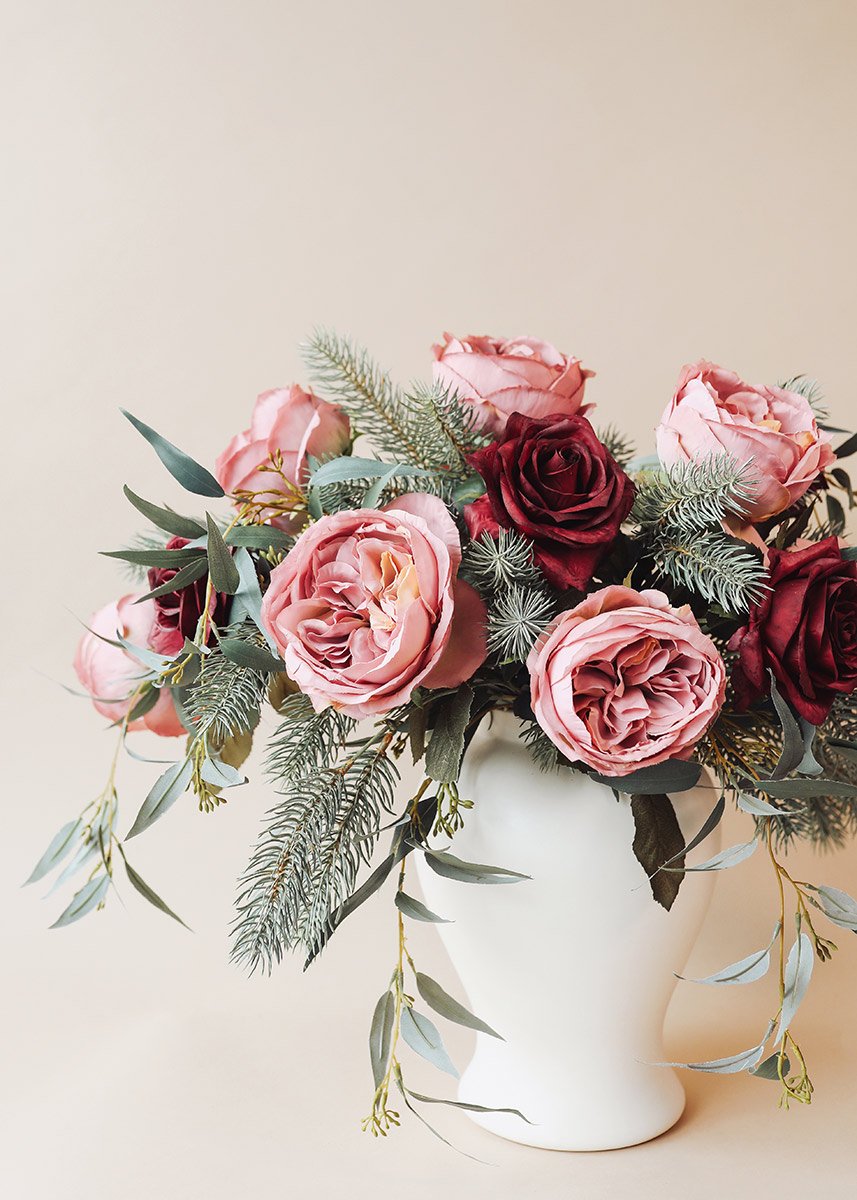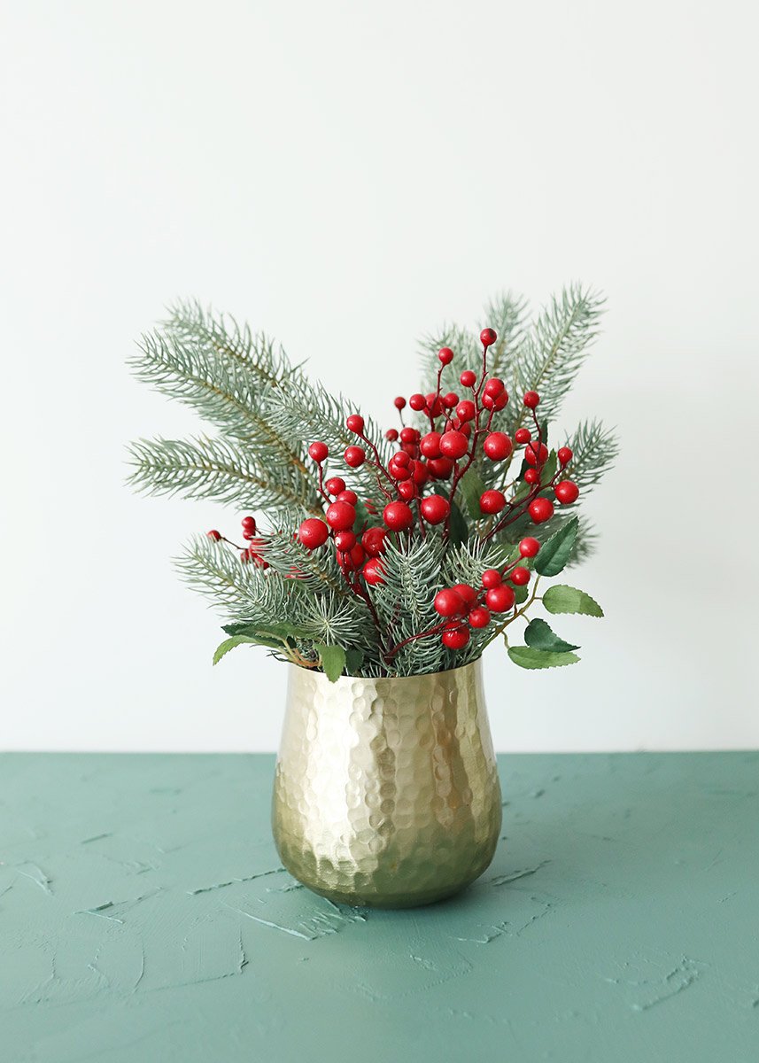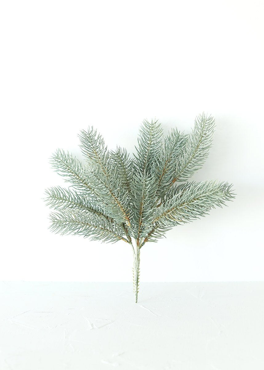 Find fake evergreens for versatile winter home decorating, like this beautiful frosted green fake mini pine bush. Display in a pot for holiday table decor, or clip apart to DIY your Christmas wreaths and floral designs.