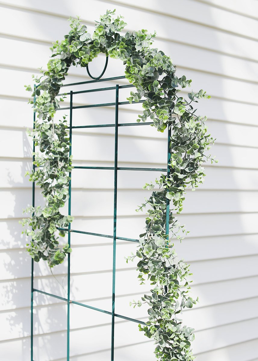 Fall in love with artificial wedding greenery garlands like this green eucalyptus garland. Dress up this luscious euc garland with silk flowers to use as a floral table runner. Perfect to accent chairs, arches, hallways, backdrops, and more for DIY event centerpieces.