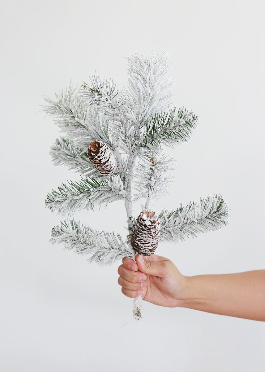 Find artificial Christmas greenery for your DIY winter wreaths and holiday arrangements, like this adorable scotch pine spray with pine cone accents. It's green and dusted with white flocking that gives it a snowed look.