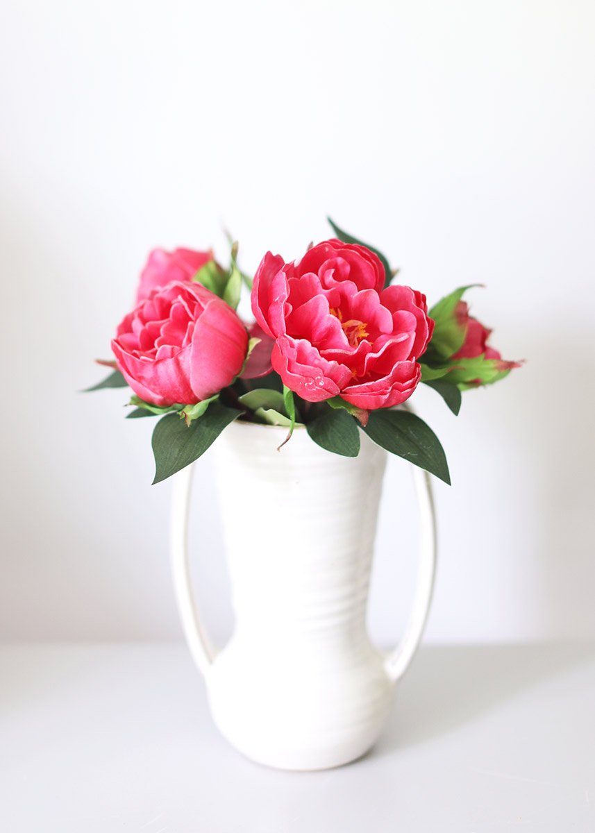 Find vase ready fake flowers, like this fuchsia real touch peony flower bundle. These gorgeous fuchsia pink peonies are the perfect pop to complete your DIY floral arrangement.