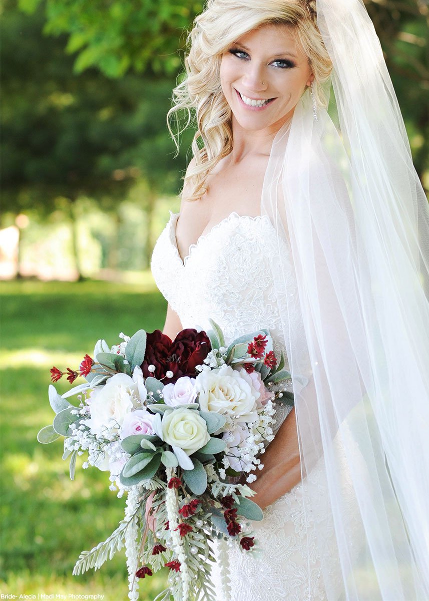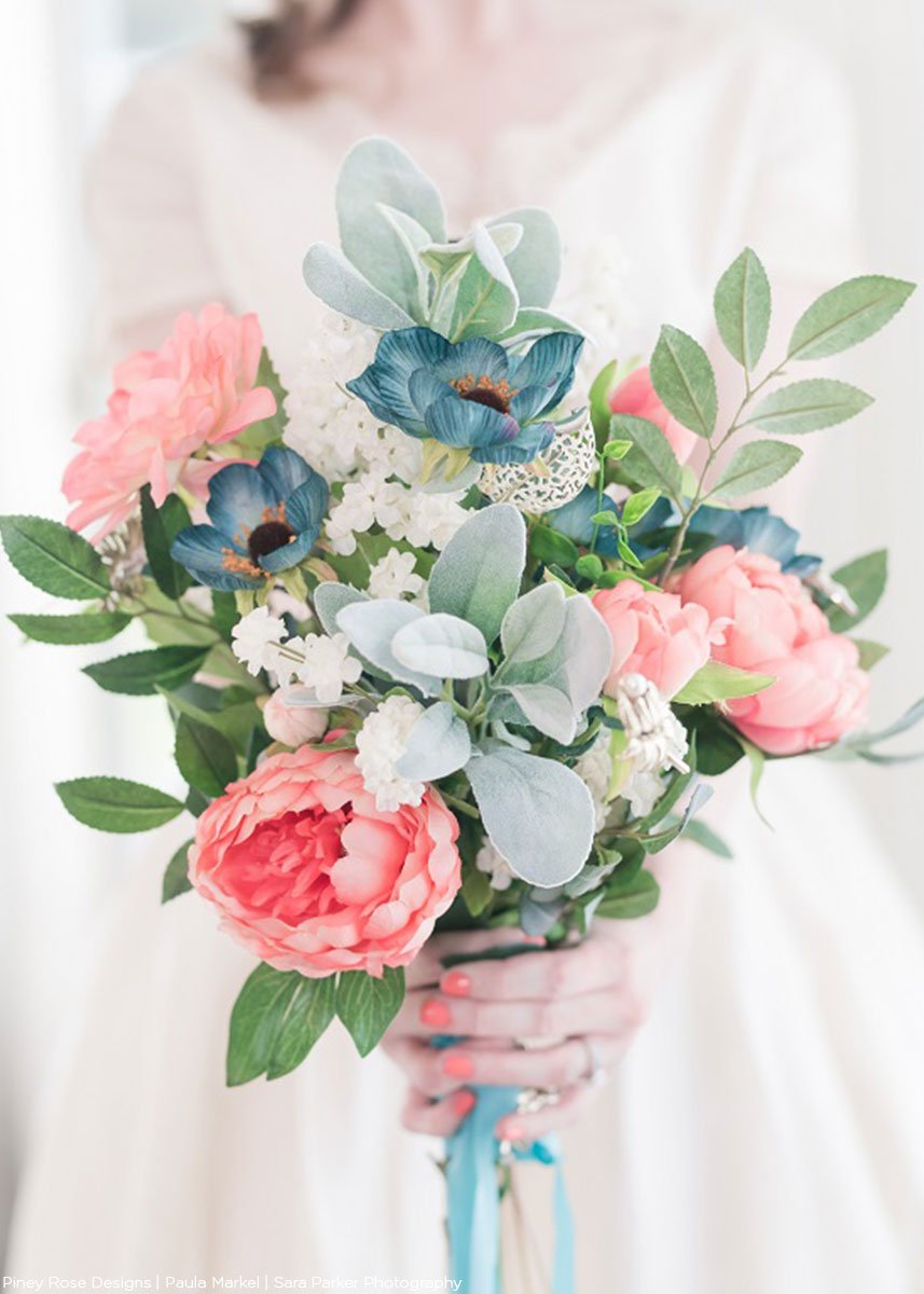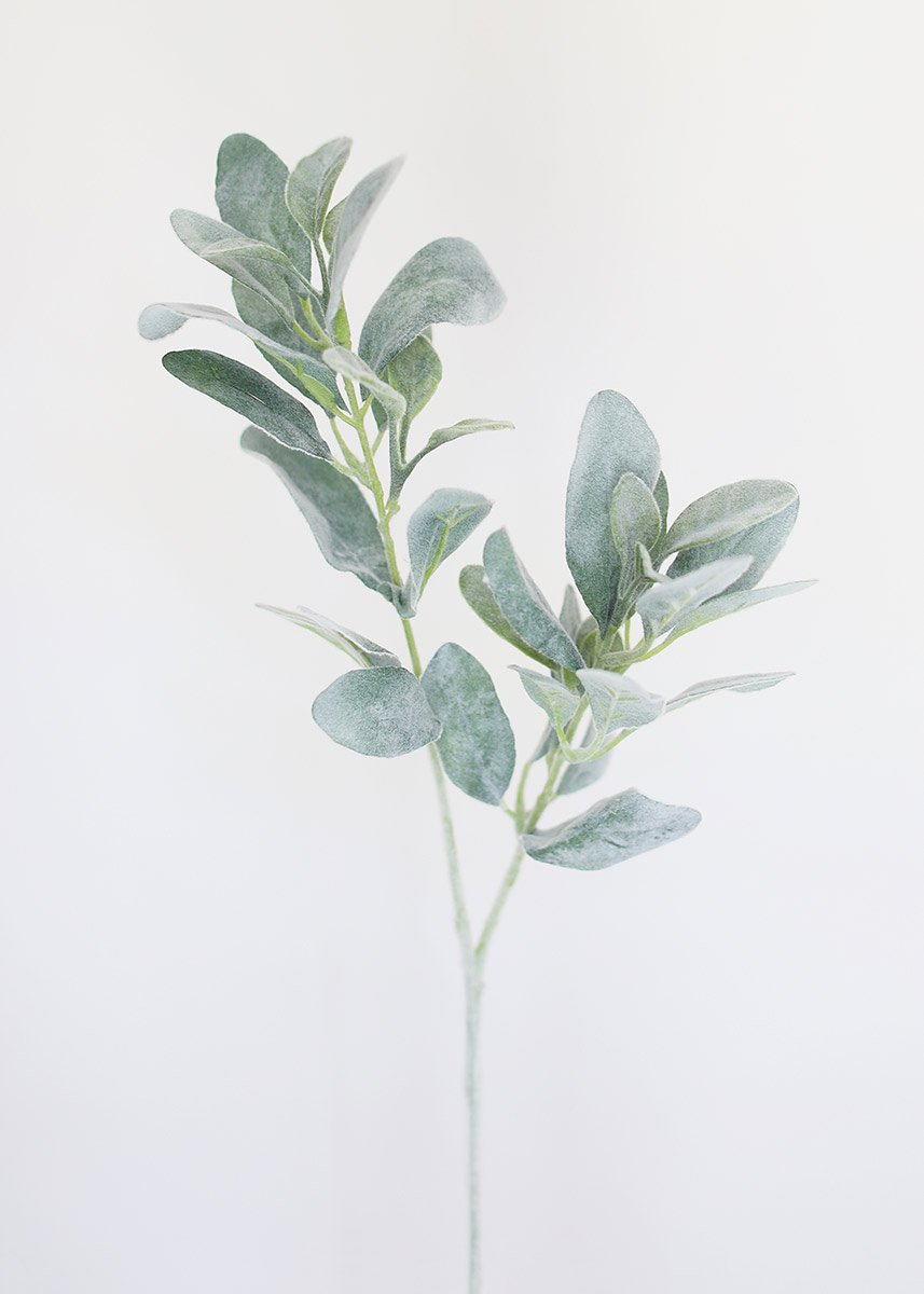 Greenery is a great way to fill out a wedding bouquet or centerpiece in a natural looking way, and this flocked lamb's ear is no exception. Leaves are flocked for a realistic, almost velvety feel. The flocking creates a soft, grey-green look.