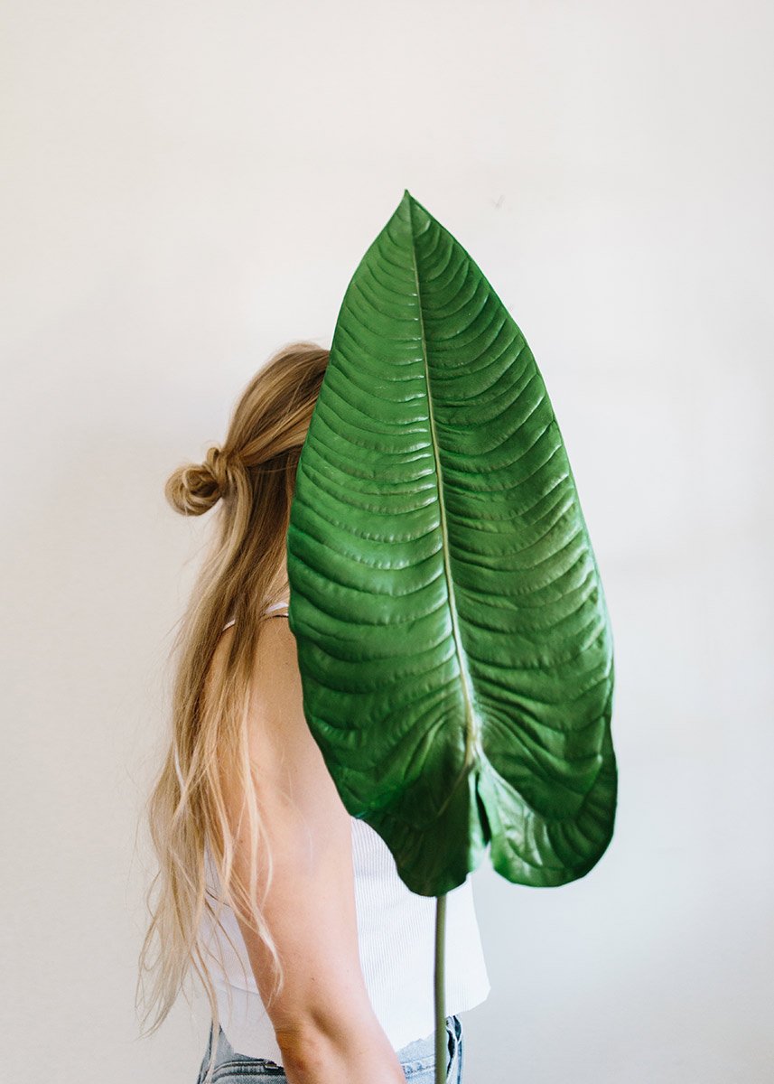 Vibrant large green leaves for your home decor arrangements, like this beautiful, artificial elephant ear leaf spray. This unique elephant ear will be perfect to add a dramatic statement to your tropical centerpieces and beach wedding bouquets!
