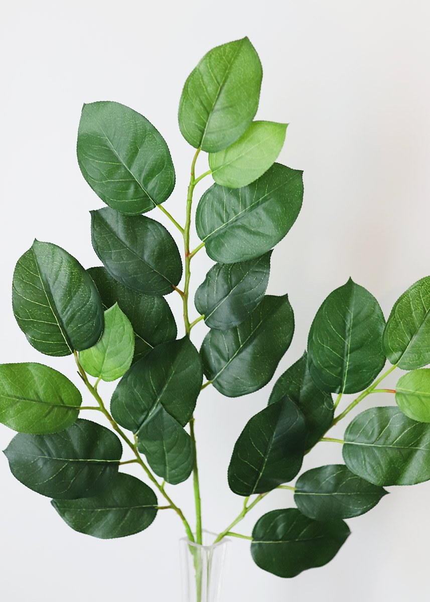Beautiful artificial lemon leaves branch in green. This lemon leaf plant is a great addition to your centerpieces and flower bouquets to add elegant height and fullness for a natural feel.