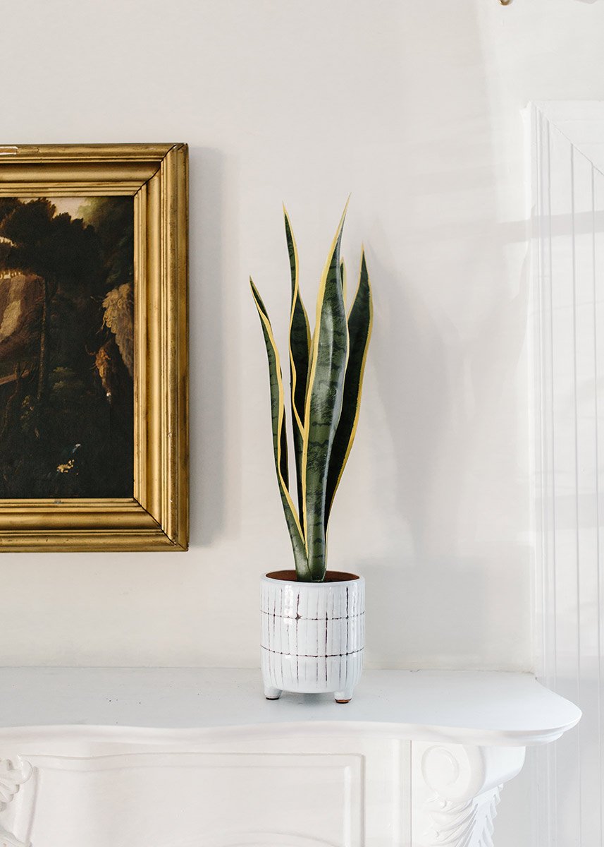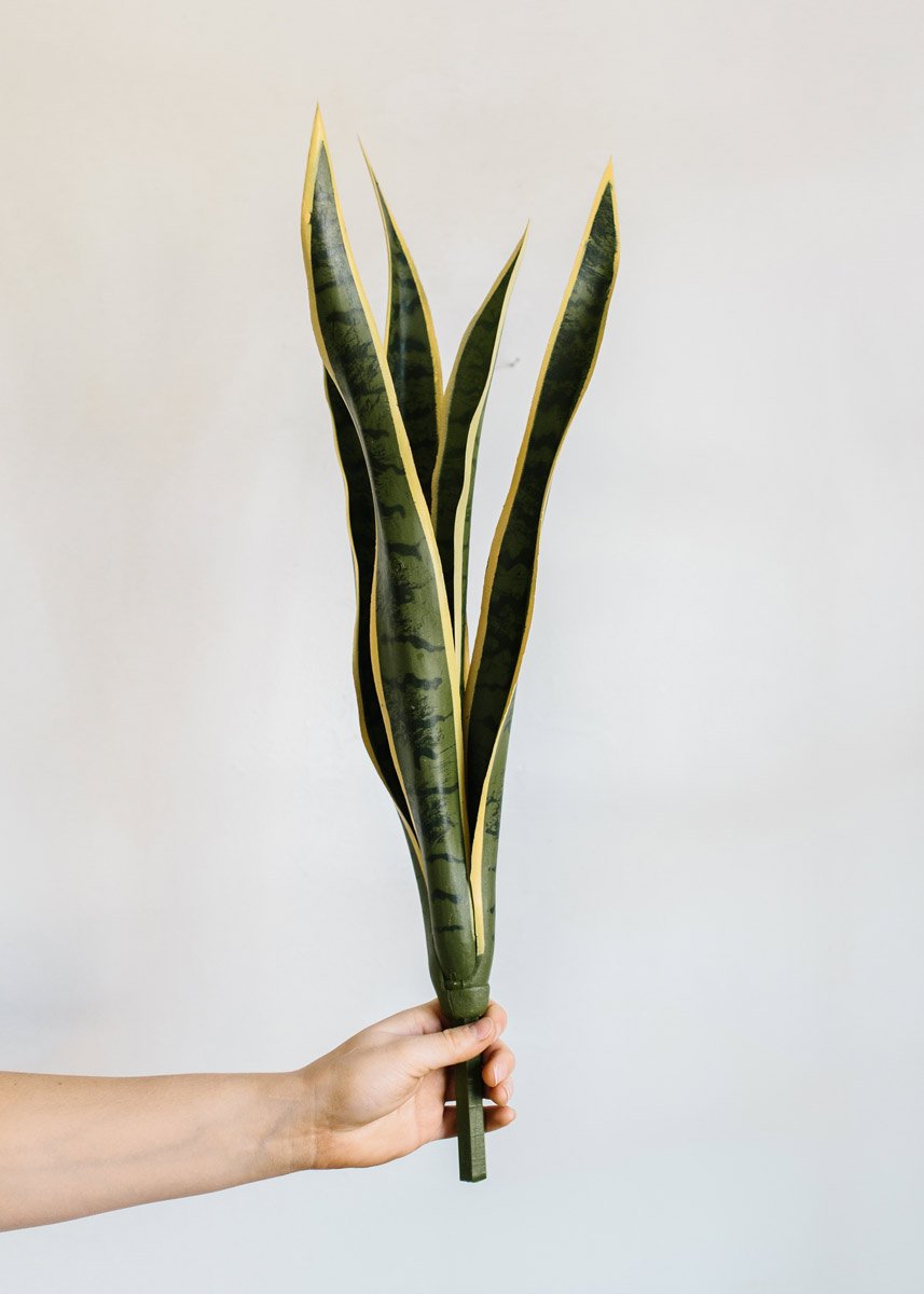 Looking for artificial plants? Check out this faux mother-in-law's tongue plant in variegated green. Despite the name, this bush is a great way to add some height and color to your centerpieces. Cut these vibrant green leaves for a lovely bouquet accent. Also know as snake plant or sansevieria.
