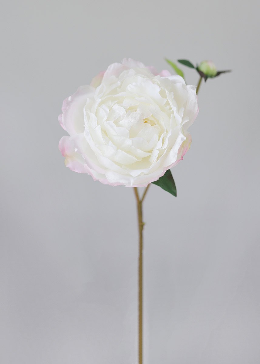 Create stunning artificial flower arrangements with this soft and delicate blush peony flower stem! With one large bloom and a smaller bud, this fake peony flower looks fresh-cut from the garden and adds depth and dimension to any floral design.