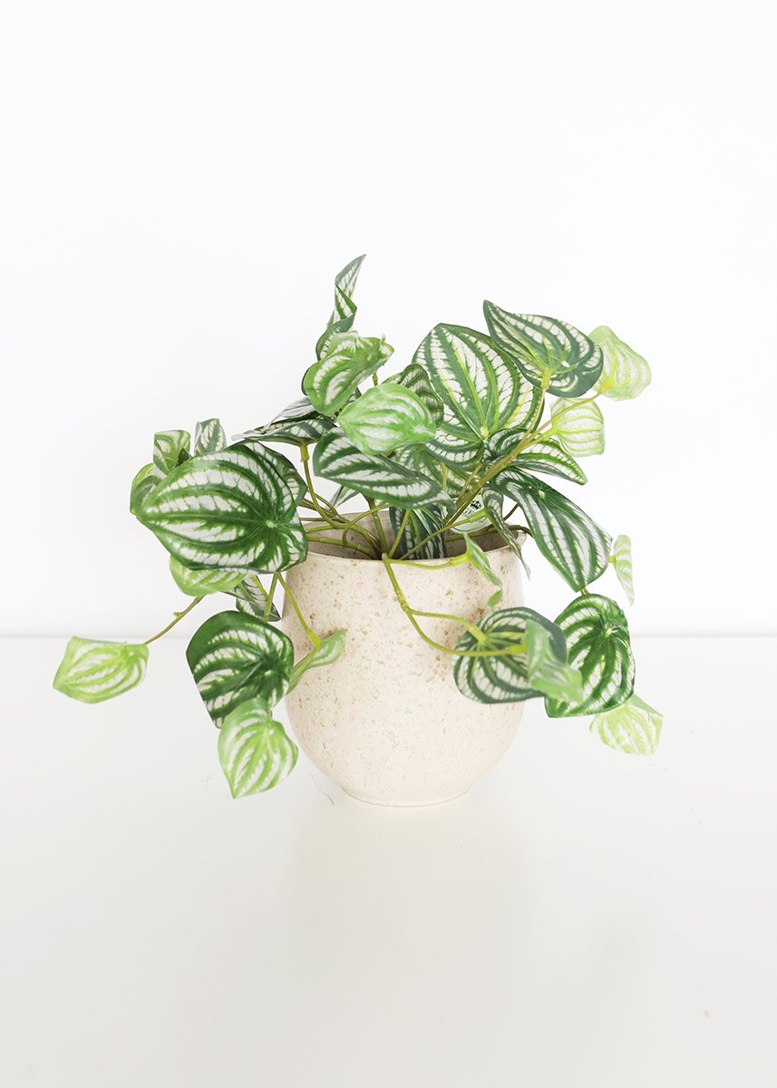 This natural touch Watermelon Peperomia plant will create gorgeous cascading planters. Hang from a macrame planter or drape over a pot for a unique and beautiful house plant.