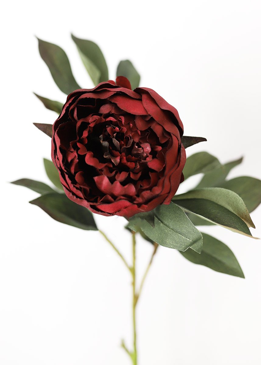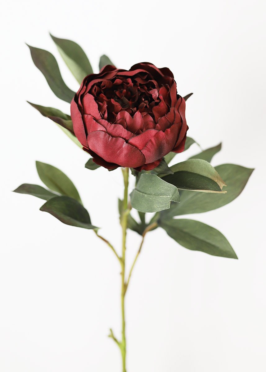 Beautiful silk peonies in marsala burgundy. This peony would be a perfect addition to your wedding flowers and fall wedding flower arrangements. Bloom has a deep, rich burgundy color and beautiful texture.