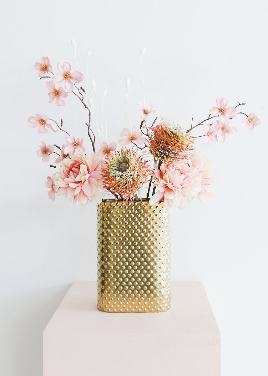 Find trendy flower vases for the home, like this lovely gold hobnail ceramic pocket vase. Its simple yet modern look makes your table floral arrangement that much more stylish.