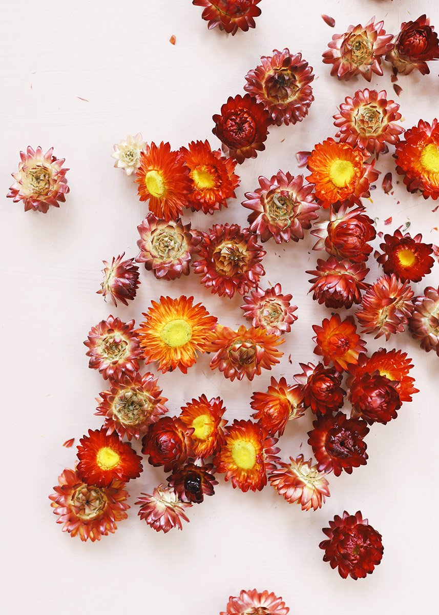 Create DIY wrist cuffs, dried flower wreaths, and more with natural strawflower heads in beautiful apricot colors.