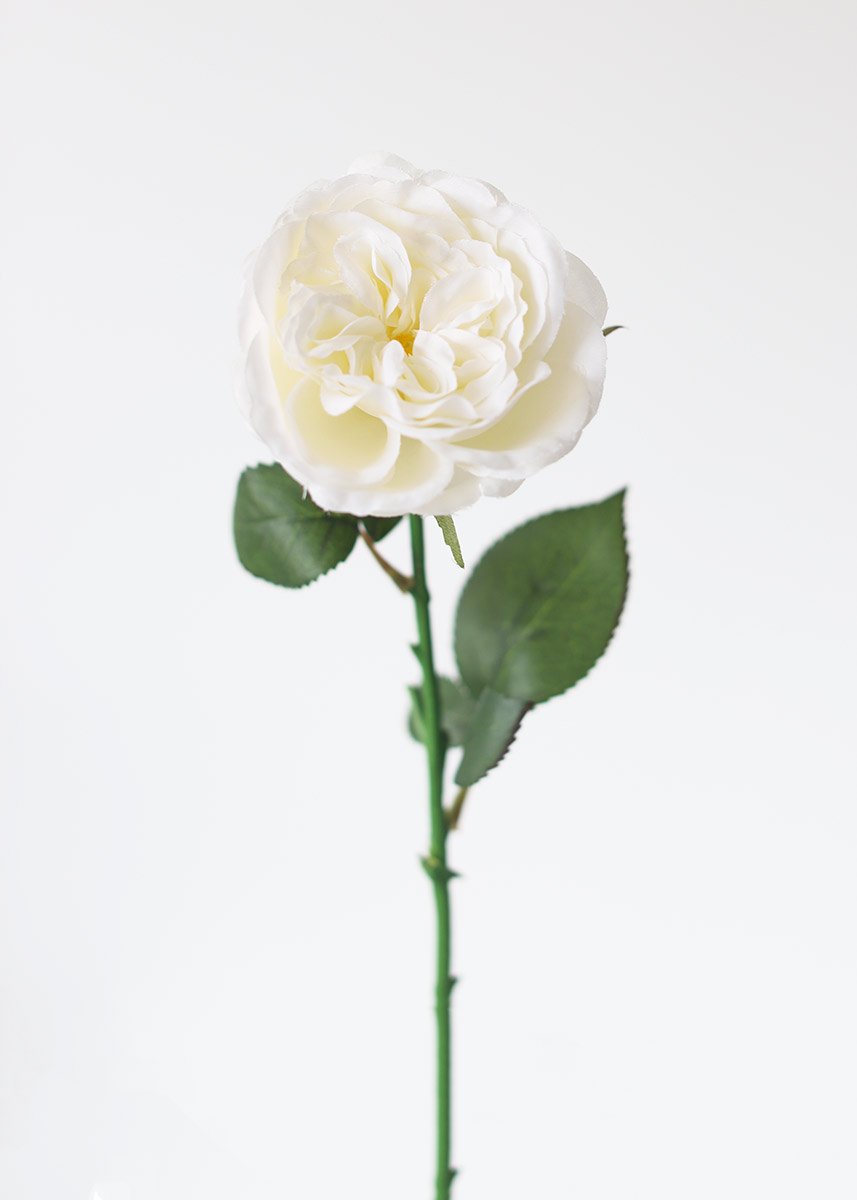 English Cabbage Artificial Rose Stem in White - 20.5" Tall