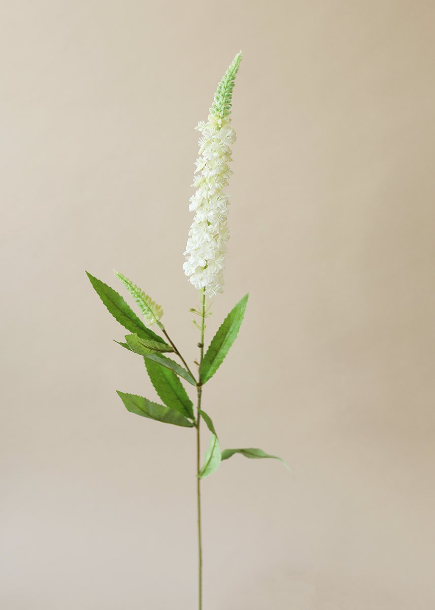 Give your DIY silk flower arrangements height and texture with this beautiful artificial veronica flower in cream white with green accents. These flowers are also known as Speedwell and Culver's Root.